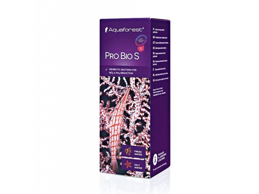 Baktérie obsiahnuté v prípravku Pro Bio S iniciujú proces redukcie nebezpečných dusičnanov a fosfátov (fosfátov), ktoré sú neskôr odstránené proteínovým odpeňovačom. Pre Bio S vytvára prírodný biologický filter, ktorý zabraňuje vzniku patogénnej mikroflóry. Používanie probiotických baktérií výrazne znižuje risk chorôb u obyvateľov akvárií a zvyšuje ich odolnosť proti stresu . Baktérie sú tiež skvelým zdrojom bakterioplanktónu, ktorý je najdôležitejšou potravou koralov .