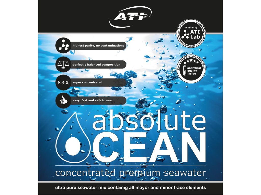Zloženie ATI Absolute Ocean je také presné, že hotový roztok môže slúžiť dokonca ako viacúčelová morská voda. Vďaka bezkonkurenčnej replikácii prírodnej morskej vody a vysokej čistote je Absolute Ocean ideálny na výmenu vody alebo dokonca na reštartovanie akvária.