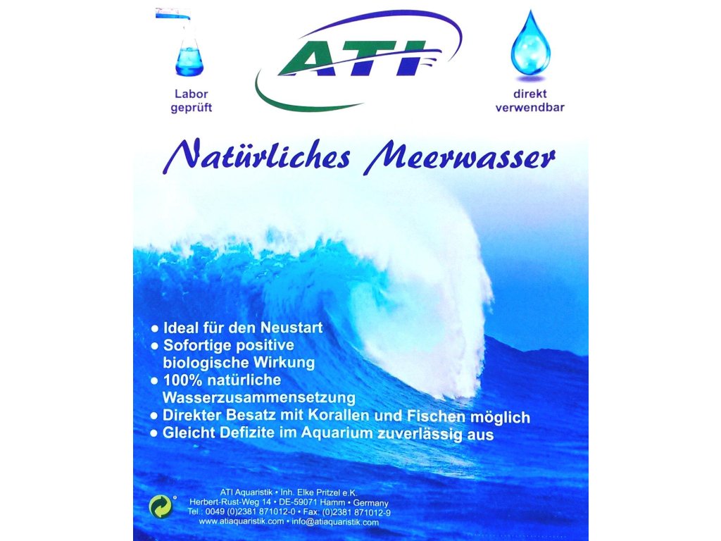 ATI Natural Seawater je obzvlášť vhodná na obnovu akvárií, pretože obsahuje všetky živiny a stopové prvky v ich prirodzenom pomere a má biologickú hodnotu, ktorej sa žiadna iná morská soľ nevyrovná. Prírodná morská voda je pripravená na okamžité použitie a umožňuje okamžité doplnenie všetkých prvkov do akvária.