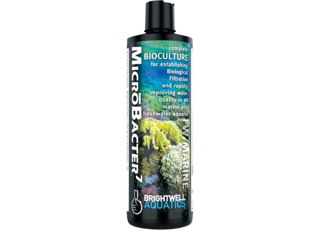 Brightwell Aquatics MicroBacter7 je komplexný systém nepatogénnych aeróbnych a anaeróbnych baktérií, ako aj prírodných enzýmov, špeciálne vyvinutý na vytvorenie biologickej filtrácie v nových akváriách a zvýšenie rýchlosti nitrifikácie, denitrifikácie a odbúravania ekologického odpadu v morských a sladkovodných akváriách prostredníctvom úplnej remineralizácie živín.