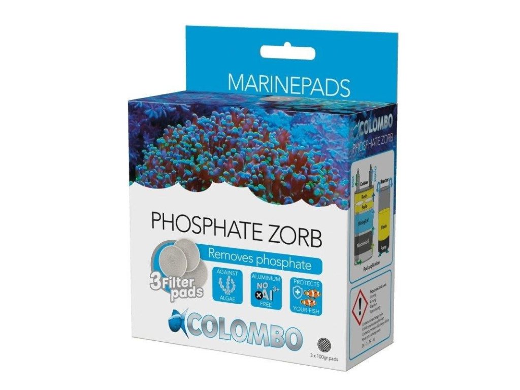 Colombo Marine Phosphate Zorb je prémiová fosfátovo-selektívna iónomeničová živica, ktorá rýchlo a bezpečne odstraňuje iónové aj chemicky viazané fosfáty z morskej vody. Hoci fosfáty sú dôležitou živinou pre koraly, nadmerné hladiny môžu podporiť rast rias, ktoré môžu byť dusivé. Preto je dôležité udržiavať nízke hladiny fosfátov. Marine Phosphate Zorb sa môže používať v kombinácii s Marine Nitrate Zorb. Phosphate Zorb neobsahuje hliník, takže ho neuvoľňuje do akvária. Vložky Marine Phosphate Zorb vydržia až 12 týždňov.