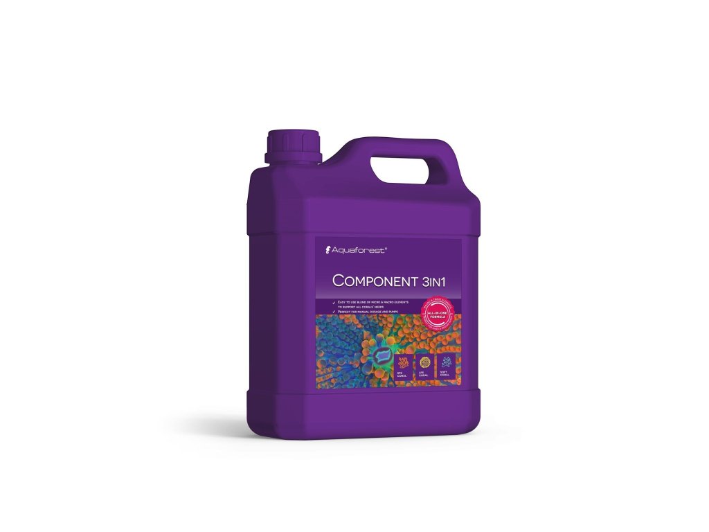 Zložka 3 v 1 je komplexný produkt obsahujúci súbor makro a mikroživín pre morské akváriá. Receptúra obsahuje koncentrovaný vápnik, horčík a KH v pomere ideálnom pre potreby koralov. Zložka 3 v 1 obsahuje aj organické vápenaté soli, vďaka čomu je zdrojom uhlíka pre morské akváriá.