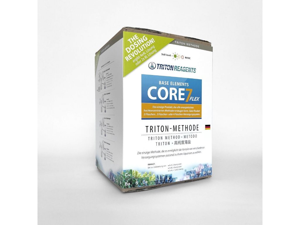 TRITON CORE7 Flex je profesionálne riešenie dávkovania novej generácie, s individuálnou voľbou prípravy 2 alebo 4 roztokov. TRITON CORE7 Flex Reef Supplemens OTHER METHODS je navrhnutý na doplňovanie a udržovanie parametrov prírodnej morskej vody pre útesové akvária bez metódy TRITON – tj s inými spôsobmi údržby „reefkeepingu“ a inými riešeniami inštalácie morských útesových akvárií. CORE7 Reef Supplements je tak vhodný aj pre rifové akvária bez riasového filtra/refúgia.
