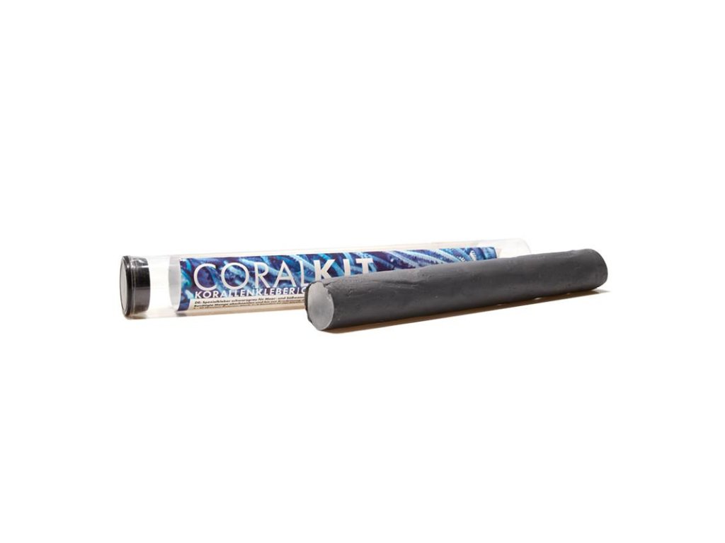 Fauna Marin Coral Kit je čierne epoxidové lepidlo, ktoré tvrdne aj pod vodou.