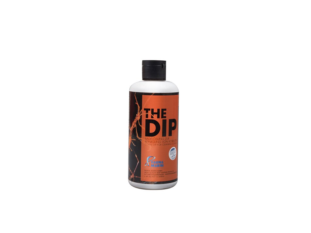 THE DIP od Fauna Marin je vysoko efektívny prípravok na očistu / kúpeľ novo zakúpených koralov rôznych druhov. Pomáha tiež aklimatizovať fragy posilňovaním ich odolnosti proti škodcom. THE DIP odstráni nežiaducich škodcov zo všetkých koralov.