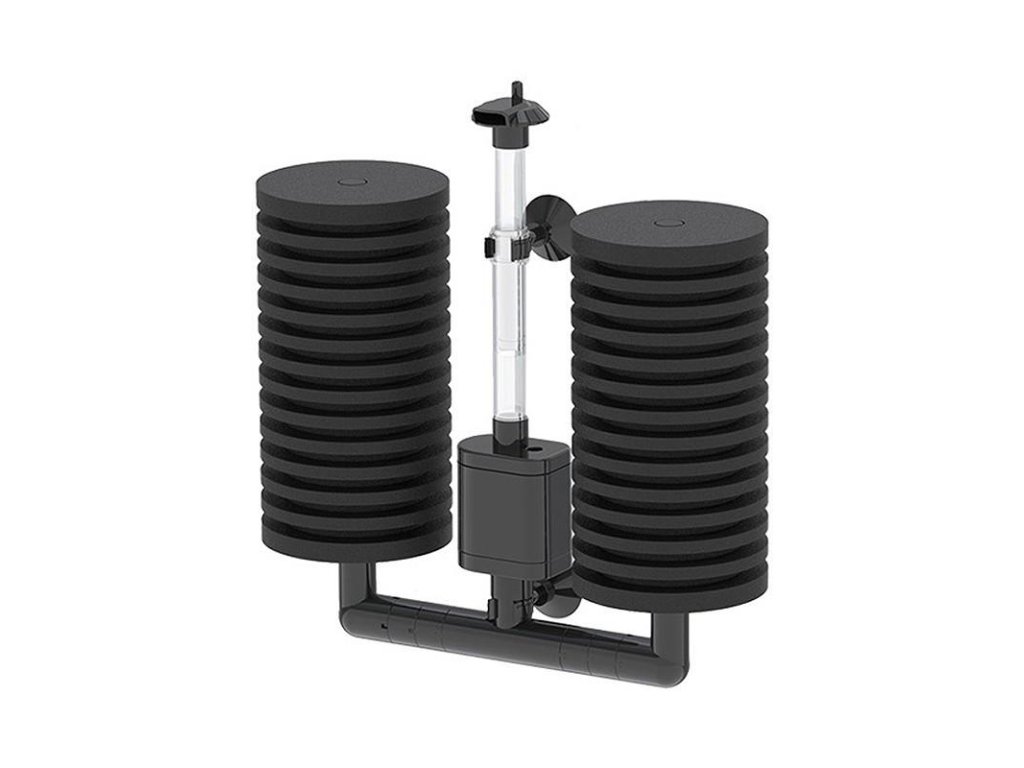 Dvojitá špongia robí filter ešte silnejším a účinnejším. Špongie tiež pomáhajú obmedziť prietok vody, čo je ideálne pre nádrže s malými a drobnými rybami. Ak sa špongia silne znečistí, jednoducho ju vyberte z filtra a opláchnite vo vode – najlepšie v akváriovej vode – aby ste predišli poškodeniu prospešných živín, ktoré sa v špongii vyvinuli.