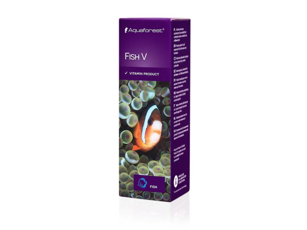 Multivitamínový doplnok určený pre všetky okrasné ryby, morské aj sladkovodné. Jeho jedinečné zloženie je založené na vitamínoch skupiny B, ktoré výrazne zlepšujú vitalitu a odolnosť rýb voči stresu a zároveň podporujú správne fungovanie nervového systému. Vitamíny skupiny B navyše regulujú funkciu slizníc, čím zabraňujú erózii epidermy. Vitamín C v krmive Fish V urýchľuje hojenie rán a regeneráciu tela. Doplnok obsahuje aj vitamín K, ktorý sa odporúča najmä počas rekonvalescencie po chorobe a je zodpovedný za správnu zrážanlivosť krvi. Vitamín E posilňuje steny ciev a pozitívne ovplyvňuje funkciu rybích pohlavných žliaz, čím zvyšuje ich plodnosť. Odporúča sa používať s mrazenými potravinami, ktorým zvyčajne chýba dostatočné množstvo vitamínov.