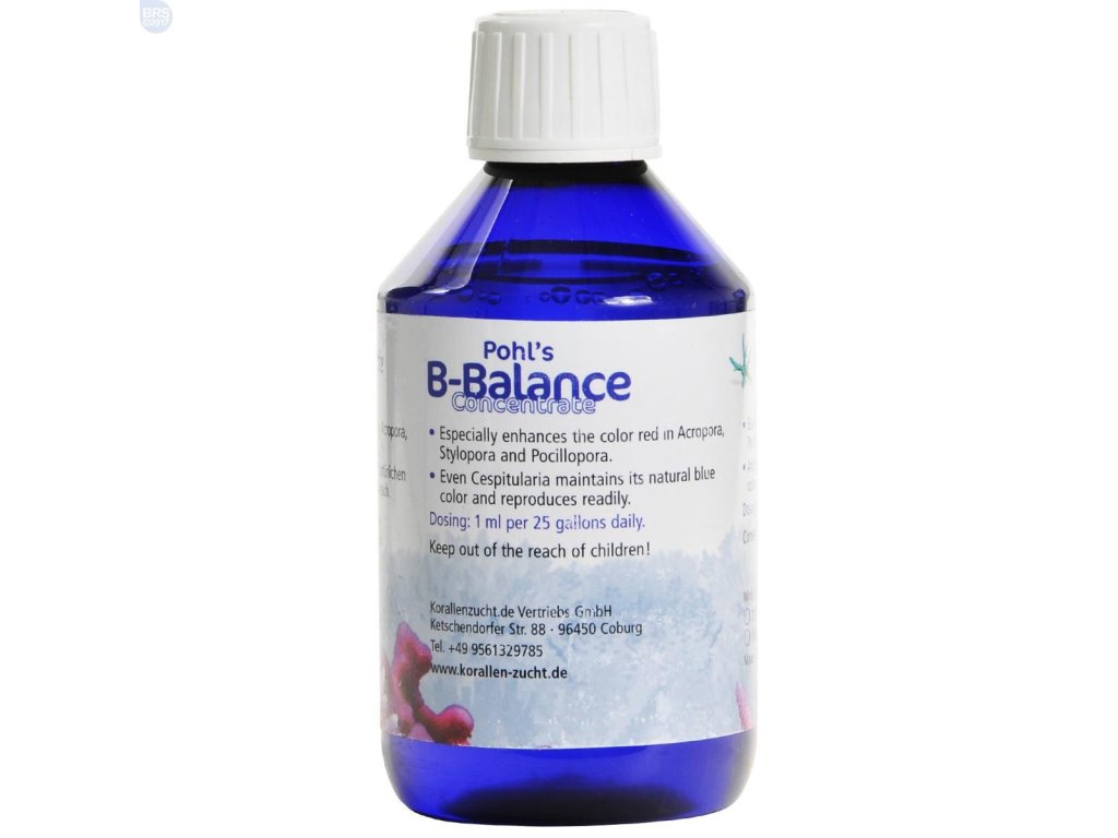Koncentrát Korallen Zucht Pohl's B-Balance obsahuje dôležité minerály a živiny pre koraly. Je to doplnok, ktorý umožňuje chov a rozmnožovanie náročných koralov. Podporuje sfarbenie koralov SPS, zvýrazňuje červené a ružové farby.