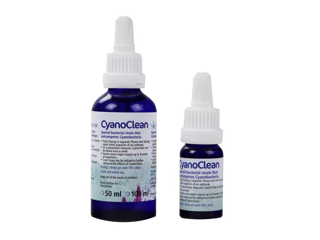 Špeciálne baktérie, ktoré ničia sinice (modrozelené riasy). Produkt by sa mal používať denne, najlepšie pri najmenšom náznaku siníc. Preventívne možno Cyano Clean podávať raz týždenne. Ak sa v nádrži nachádza veľké množstvo modrozelených rias, ich likvidácia môže trvať až osem týždňov. Pridanie Coral Snow urýchľuje liečbu.