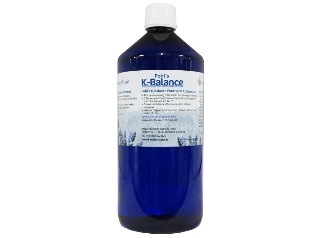 Koncentrát Korallen Zucht Pohl's K-Balance je draslík, ktorý je jednou z hlavných zlúčenín nachádzajúcich sa v morskej vode s koncentráciou podobnou vápniku, a to na úrovni 380 – 410 mg/liter. K-balance obsahuje draselné soli a draselné ióny vo vysoko koncentrovanej forme.