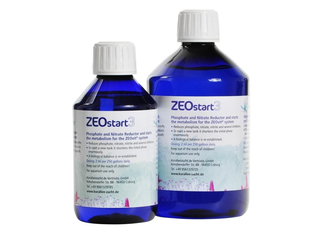 ZEOstart 3 bol vyvinutý pre akvaristov, ktorí sa usilujú o biologicky optimálne parametre vody vo svojich morských akváriách. Podporuje rast všetkých nitrifikačných baktérií v slanej vode v akváriu, a preto je vysoko účinný pri znižovaní fosfátov, dusičnanov, dusitanov a niekoľkých inhibítorov. Skimmer odstráni až o 100 % viac koncentrovaného adsorbentu. Pri zakladaní nového akvária sa počiatočná fáza výrazne skracuje na približne 14 dní. Tento produkt by sa mal v každom morskom akváriu dávkovať denne, nielen počas počiatočnej fázy.