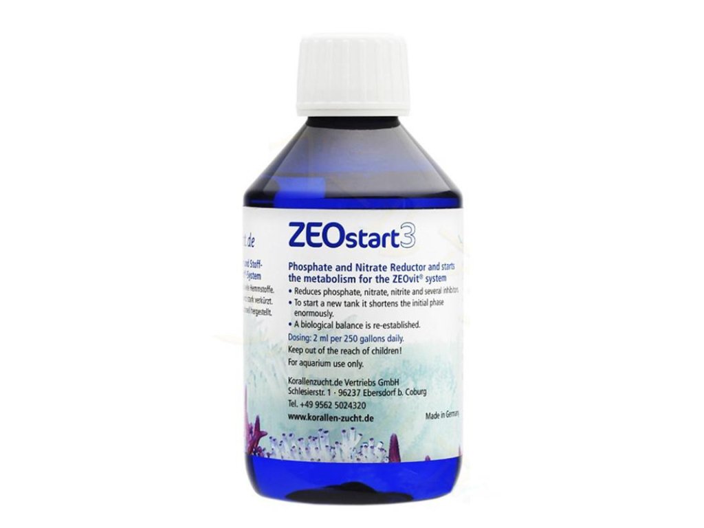 ZEOstart 3 bol vyvinutý pre akvaristov, ktorí sa usilujú o biologicky optimálne parametre vody vo svojich morských akváriách. Podporuje rast všetkých nitrifikačných baktérií v slanej vode v akváriu, a preto je vysoko účinný pri znižovaní fosfátov, dusičnanov, dusitanov a niekoľkých inhibítorov. Skimmer odstráni až o 100 % viac koncentrovaného adsorbentu. Pri zakladaní nového akvária sa počiatočná fáza výrazne skracuje na približne 14 dní. Tento produkt by sa mal v každom morskom akváriu dávkovať denne, nielen počas počiatočnej fázy.