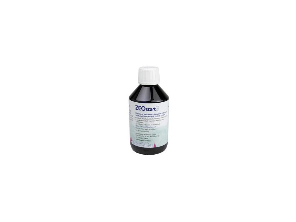 ZEOstart 3 bol vyvinutý pre akvaristov, ktorí sa usilujú o biologicky optimálne parametre vody vo svojich morských akváriách. Podporuje rast všetkých nitrifikačných baktérií v slanej vode v akváriu, a preto je vysoko účinný pri znižovaní fosfátov, dusičnanov, dusitanov a niekoľkých inhibítorov. Skimmer odstráni až o 100 % viac koncentrovaného adsorbentu. Pri zakladaní nového akvária sa počiatočná fáza výrazne skracuje na približne 14 dní. Tento produkt by sa mal v každom morskom akváriu dávkovať denne, nielen počas počiatočnej fázy.
