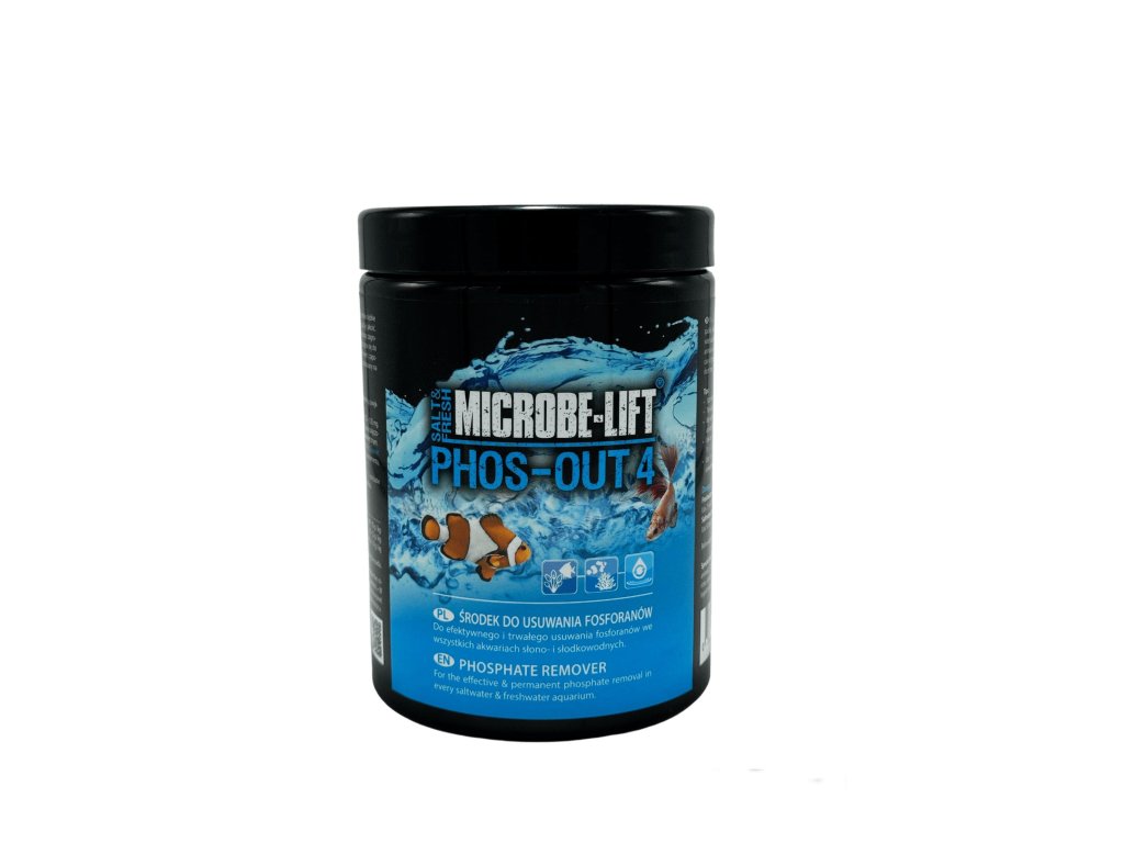 - odporúčame pravidelne používať čistič substrátov Microbe-lift na odstránenie prebytočných fosfátov z akvária (počas používania odstraňujte Phos-Out4 z vody, kým voda opäť nie je číra)