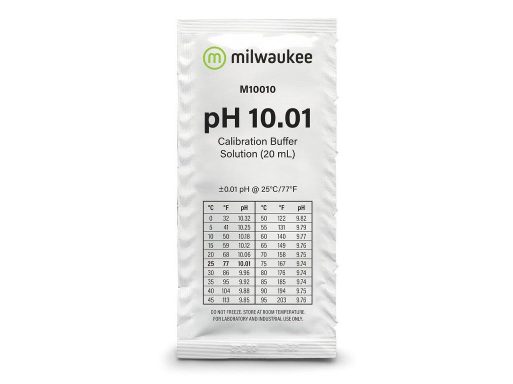 M10010B je laboratórny tlmivý roztok s pH 10,01, certifikovaný na splnenie normy s presnosťou ±0,01 pH, čím sa eliminujú nepresnosti spojené s miešaním kalibračných roztokov z prášku.
