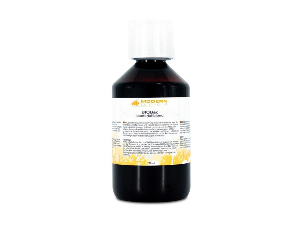BIOBac je syntetická, širokospektrálna bakteriálna zmes, ktorá obsahuje probiotiká a nitrifikačné baktérie – navrhnutá tak, aby napomáhala procesu nitrifikácie a rozkladu toxického amoniaku a bisulfitu. BIOBac eliminuje nepríjemné pachy, zlepšuje čistotu vody, pomáha čistiť substrát a kamene a pomáha redukovať detritus.