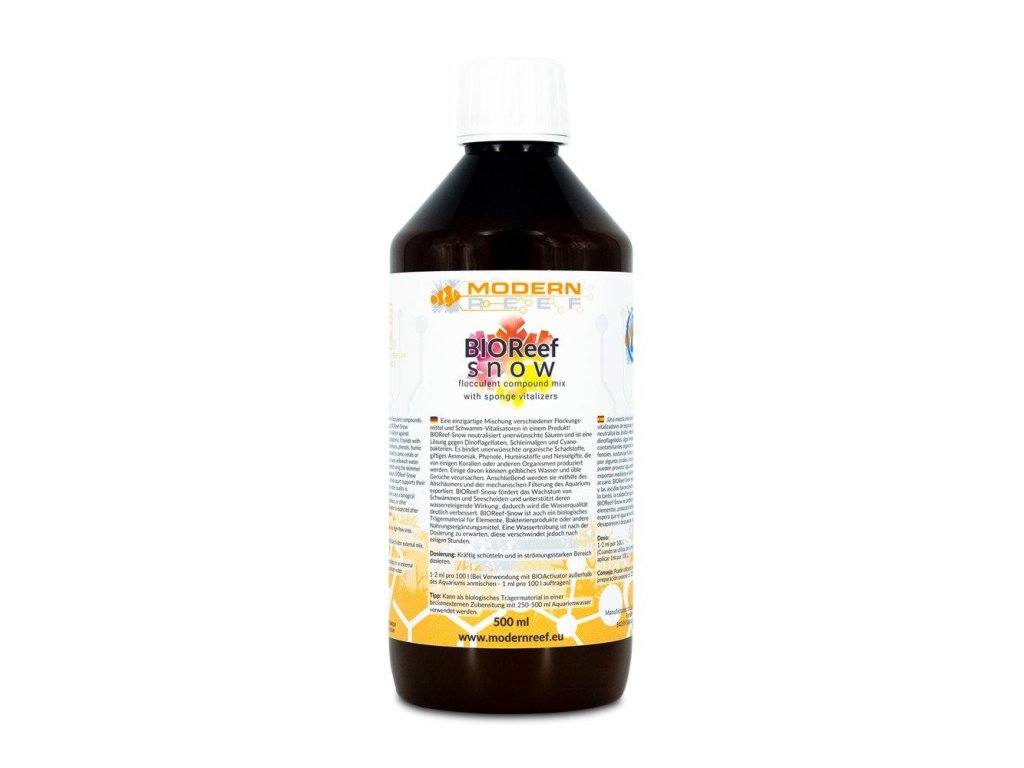 BIOReef-Snow zvyšuje rast hubiek, čím výrazne zlepšuje kvalitu vody. BIOReef-Snow tiež pôsobí ako biologický sprostredkovateľ prvkov, bakteriálnych produktov a iných doplnkov. Po podaní sa očakáva zakalenie vody, ktoré ustúpi v priebehu niekoľkých hodín.