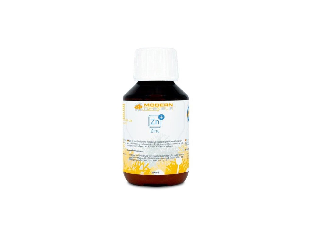 Zn+ je vysoko čistý tekutý roztok na úpravu nerovnováhy zinku v útesových akváriách. 1 ml Modern Reef Zn+ zvyšuje hladinu zinku v 100 litroch o 2 µg/l.