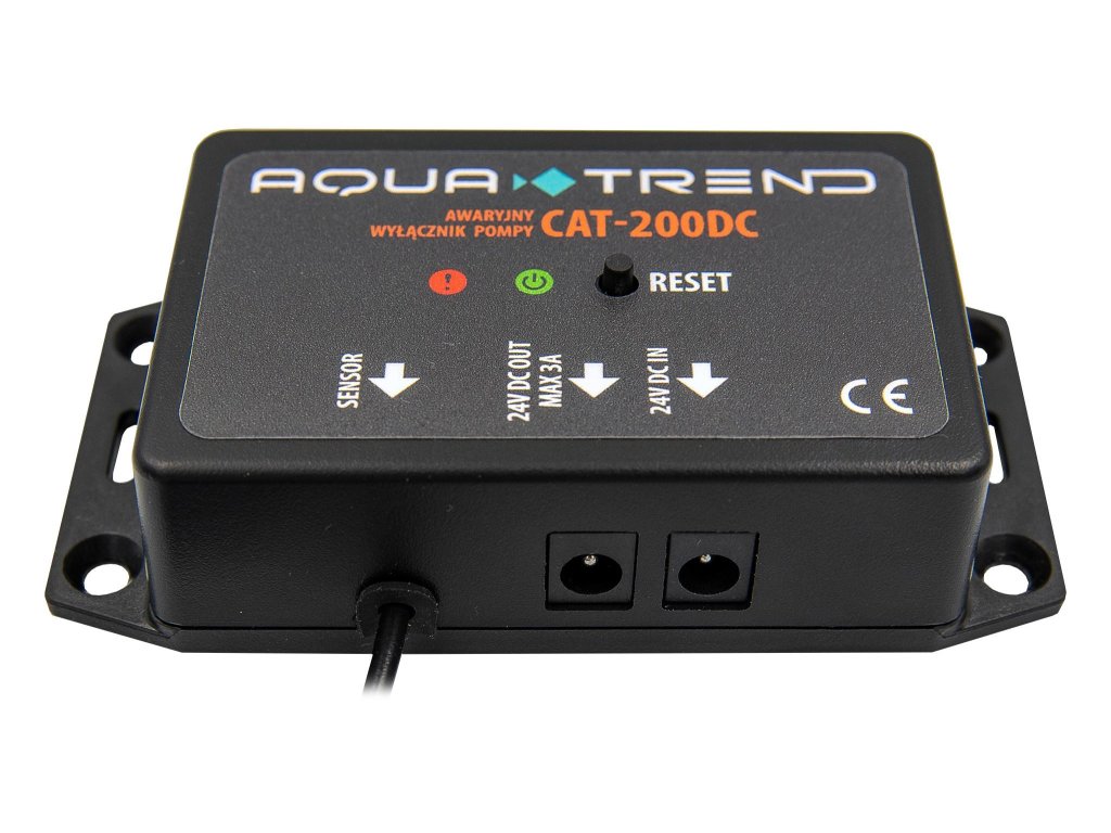 CAT-200DC je zariadenie určené na použitie v akváriách a slúži na monitorovanie prevádzky čerpadla alebo solenoidového ventilu napájaného 24 V jednosmerným prúdom. Zariadenie je navrhnuté tak, aby vyplo čerpadlo alebo solenoidový ventil, ktorý monitoruje, keď je aktivovaný snímač hladiny kvapaliny (keď je detekovaná špecifická hladina kvapaliny).