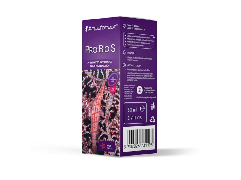 Unikátne zloženie špeciálne vybraných probiotických bakteriálnych kmeňov určených na urýchlenie rozkladu organickej hmoty. Rozkladá látky toxické pre ryby a uvoľňovaním makro- a mikroživín zvyšuje ich dostupnosť. Pro Bio S sa odporúča najmä pre veľké, náročné akváriá s veľkou populáciou rýb.