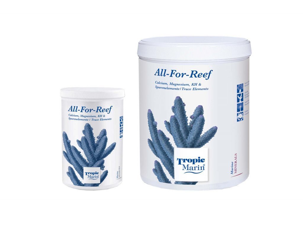 Komplexné dávkovanie minerálov pre morské akvária. Tropic Marin® ALL-FOR-REEF je ľahko použiteľná, vysoko koncentrovaná zmes potrebných minerálov a stopových prvkov. Minerály sú spotrebované prostredníctvom rastúcich organizmov a iných procesov v morských akváriách a preto musia byť pravidelne dopĺňané. Ide najmä o nevyhnutné prvky ako vápnik, horčík, stroncium a uhličitanovú tvrdosť pre rast vápenných skeletov tvrdých koralov, červených vápenitých rias a iných organizmov žijúcich v morských útesoch. ALL FOR REEF obsahuje všetky tieto komponenty vo vysoko koncentrovanej forme ak tomu obsahuje najdôležitejšie stopové prvky: jód, bróm, fluór pre rast a stabilizáciu kostier koralov, húb, kôrovcov; selén na elimináciu voľných radikálov; molybdén a vanád pre vytvorenie dôležitých enzýmových komplexov. S týmito prvkami, koordinovanými do koncentrovaného pomeru, ALL-FOR-REEF vytvára výborné podmienky pre starostlivosť o morské akvária jediným prípravkom. Nevytvárajú sa žiadne ďalšie zlúčeniny (napr. chlorid sodný), ktoré by menili slanosť alebo iónovú rovnováhu. Výhody: kompletná dodávka minerálov iba v jednom koncentrovanom roztoku sú už zahrnuté všetky najdôležitejšie stopové prvky žiadna tvorba vedľajších produktov (napr. chlorid sodný), ktoré by menili slanosť alebo iónovú rovnováhu žiadna tvorba nadbytočného oxidu uhličitého vhodná pre všetky morské akvária obsahujúce morské ryby, mäkké koraly, SPS, LPS koraly, kôrovce atď. Jednoduché dávkovanie – ako pre manuálne dávkovanie, tak aj pre dávkovacie čerpadlá roztoku. Použitie: 6 odmerných lyžičiek (približne 160 g) práškového All-For-Reef rozpustite v 1 l vody z reverznej osmózy, vzniknutá minerálna zmes má dlhú trvanlivosť a obsahuje 43 000 mg vápnika, 6 000 °dKH, 1 900 mg horčíka. stroncia, 34 mg jódu a všetky ďalšie dôležité stopové prvky. Dávkujte denne 5 ml minerálneho roztoku na každých 100 l objemu akvária. Monitorovaním uhličitanovej tvrdosti (KH) zvyšujte dennú dávku o 2,5 ml na každých 100 l objemu akvária každý týždeň, kým nedosiahnete konštantnú úroveň uhličitanovej tvrdosti 7 až 9 °dKH. Maximálna dávka: 25 ml roztoku na 100 l objemu akvária denne.