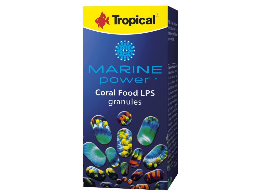Väčšina koralov nachádzajúcich sa v akváriách žije v symbióze s riasami (zooxantelami). Proces fotosyntézy, ktorý vykonávajú zooxantely, vyžaduje prístup k svetlu. Cukry, ktoré pri tom vznikajú, sú zdrojom energie pre koraly. Na rast však koraly potrebujú aj ďalšie živiny, ktoré získavajú heterotrofnou výživou, zachytávaním fyto- a zooplanktónu z morskej vody, ako aj organických látok rozpustených vo vode. V akváriu je zdrojom týchto živín pre koraly MARINE POWER CORAL FOOD LPS GRANULES , ktorého bohaté zloženie obsahuje:
